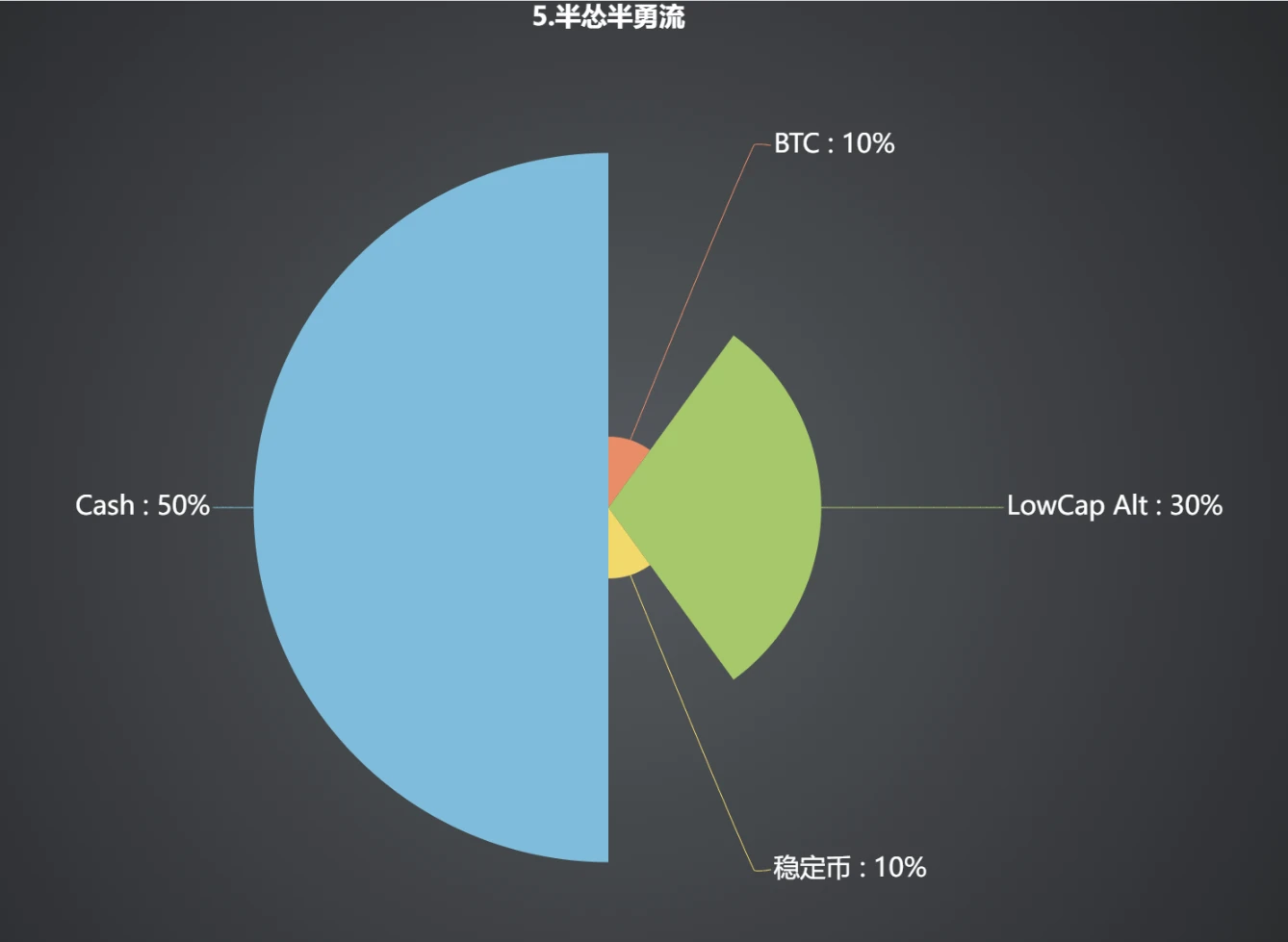现金 50% 、Altcoin Low Cap 30% 、U 10% 、BTC 10%
