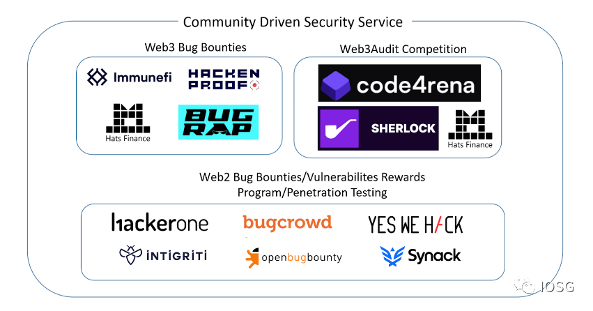 社区驱动的的审计平台会给中心化的审计公司带来威胁么?我们认为他们会是良性相互竞争和互补的关系,短期内看当Code4rena这样的平台形成一定的网络效应并且拿出了不错的track record(审计过项目被hack比例低),确实可能会给一些中尾部的中心化公司带来一定的竞争压力,但是长期可能这也会倒逼中心化审计平台与社区驱动的平台形成一些商业合作,因为这也能拓宽中心化安全审计平台的客户群体并提升审计质量(有点像原来web2大公司内部独立运营的安全赏金项目后来也和第三方平台HackerOne等形成合作的逻辑)。