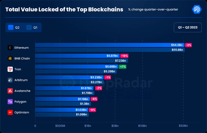 上图: 2023 年二季度头部区块链总锁仓量数据