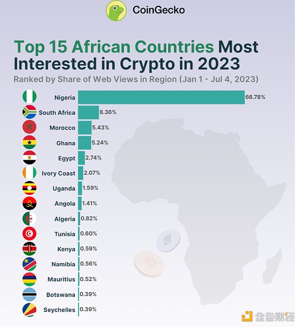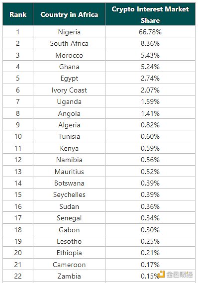 总的来说,排名前 15 的非洲国家代表了今年非洲大陆 97.5% 的加密货币兴趣份额。