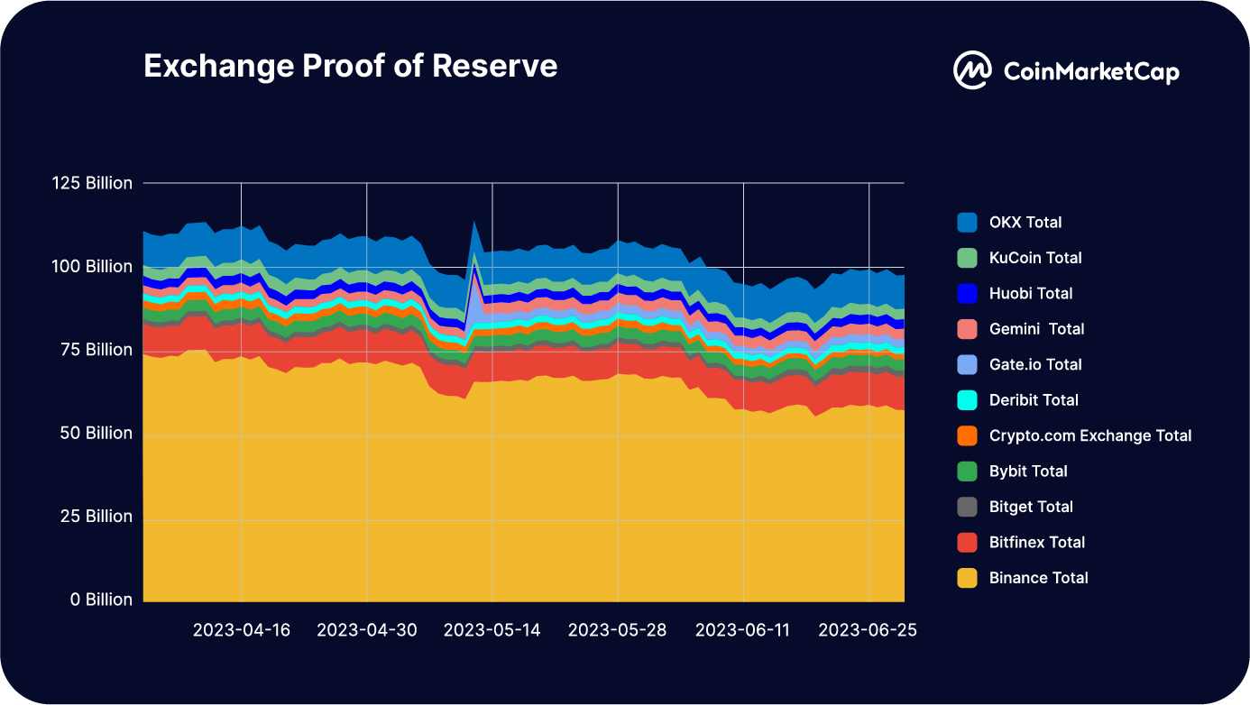 值得注意行业内一个十分积极的迹象是,尽管在 2023 年第二季度 Binance 出现大量资金外流,但该交易平台仍保留了健康数量的准备金证明资产,并且这些资产的组成是安全性高且多样化的货币。