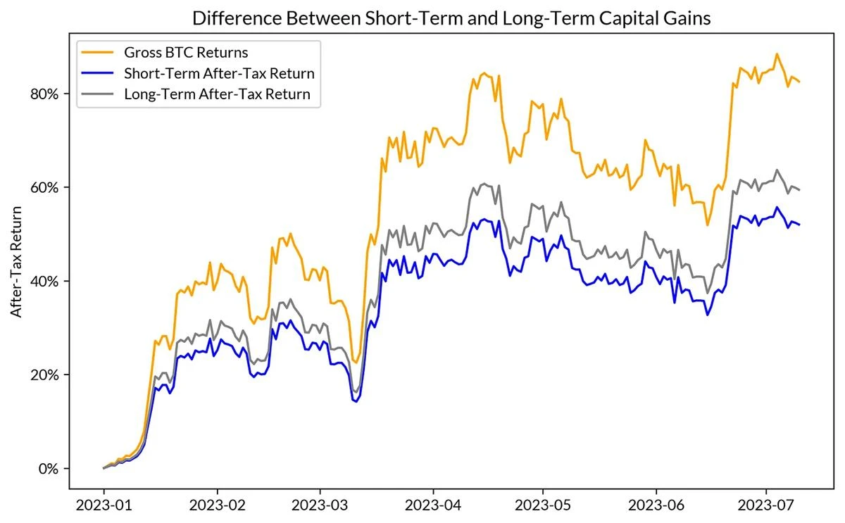 目前,美国大多数投资者可以使用的主要税收优惠账户,包括个人退休账户(IRAs)、 401 (k)计划和健康储蓄账户(HSAs),不允许直接投资数字资产,尽管有一些明显的例外,包括富达( Fidelity )、上市矿业公司和 Microstrategy。这一限制阻碍了推迟或抵消与数字资产投资相关的税收能力,这对投资者来说是一个相当大的不利因素。即使对于选择自托管的投资者来说,这些账户仍然非常重要,因为即使是稍微减少资本利得税支付,也会明显影响投资的整体表现(尤其是当短期资本利得税率适用时,如下所示)。