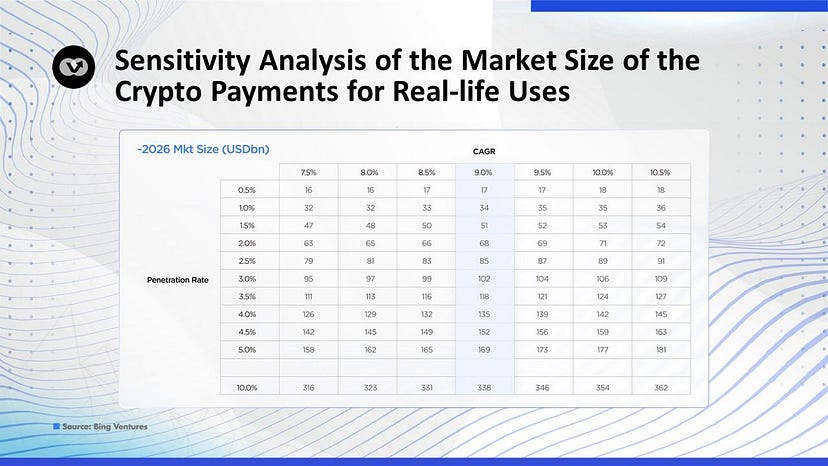 根据全球支付行业总体增速预估和加密货币在实体经济支付领域的敏感性分析,报告预测,未来3年内,全球加密货币支付市场规模将达到数千亿美元。