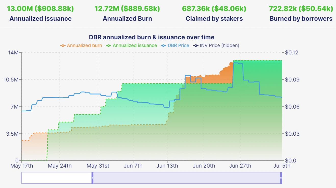 DBR 主要由 INV 质押者产出,对 DBR 的需求会激励 INV 代币持有者进行质押,为 INV 代币赋能,二者相辅相成。