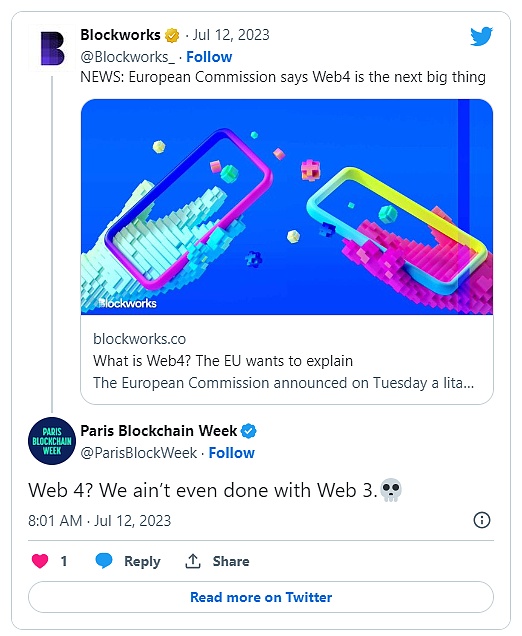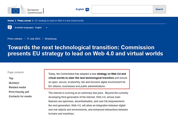 欧盟委员会甚至引入了Web4一词,它代表了科技界的一个全新概念。