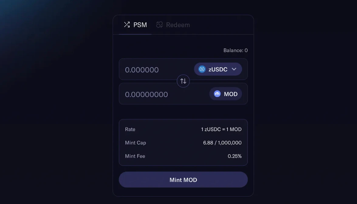 通过 MOD-USDC LP 和 PSM 一键递归循环。