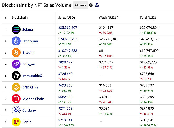 6 月下旬,Solana 的 NFT 交易量首次超过以太坊。 24 小时内,Solana 的交易量达到 2550 万美元,而以太坊的交易量为 2470 万美元,这一成就的主要原因是 SMBs 的推出。