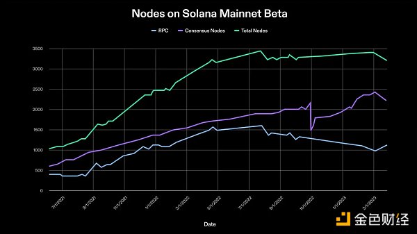 2020 年 3 月,主网启动,现已扩展至 3, 400 多个验证者,拥有 2, 400 多个共识节点——Solana 上的节点数量明显高于其他 POS 区块链。基金会现在关注的是节点质量,而不仅仅是数量。