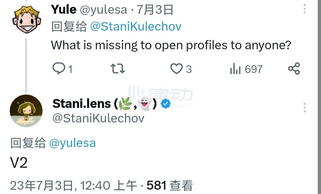 而这个 Lens V2 版本得到社区如此重视的原因,除了 Lens 本身强大的空投预期和用户尝鲜,使得社区热度与 Lens 官方的每一次动作都具有极强的相关性,最重要的一个原因就是社区曾提问:「Lens 现在还没有开启公测是因为缺少了什么呢?」