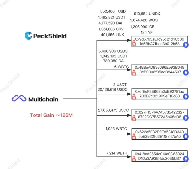 由于 Fantom 采用了 Multichain 作为生态的主要跨链桥,随着 Multichain 资金出现漏洞(7 月 7 日流出 1.26 亿美元,其中约 1.18 亿美元资产从 Multichain Fantom 桥接合约中被转移),这一漏洞带来的影响也直接传导至了 Fantom。