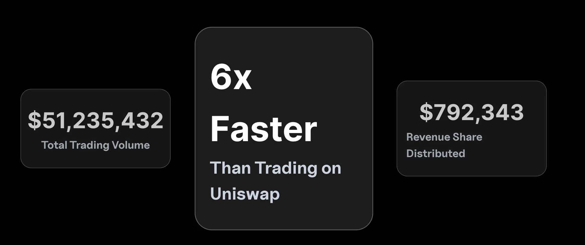 其界面显示,该 bot 交易速度是 Uniswap 的 6 倍之多,作为一个较新的项目,Unibot 上的总交易量和收益分成数据也很不错。