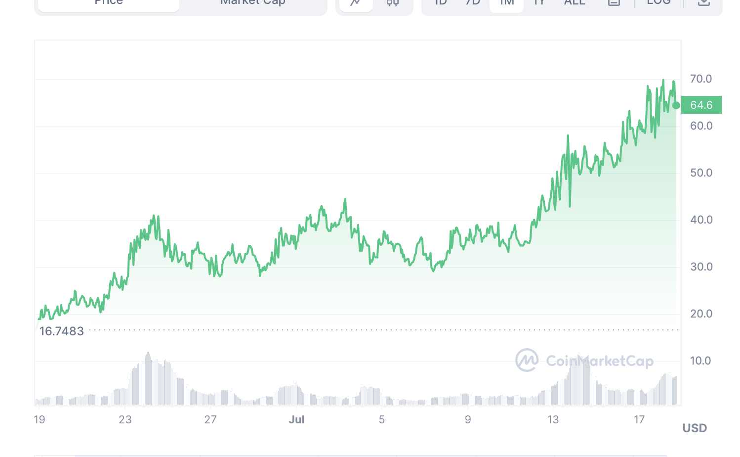 而据 CoinMarketCap 数据显示,Unibot 的 token 也在一个月内上涨了近三倍。