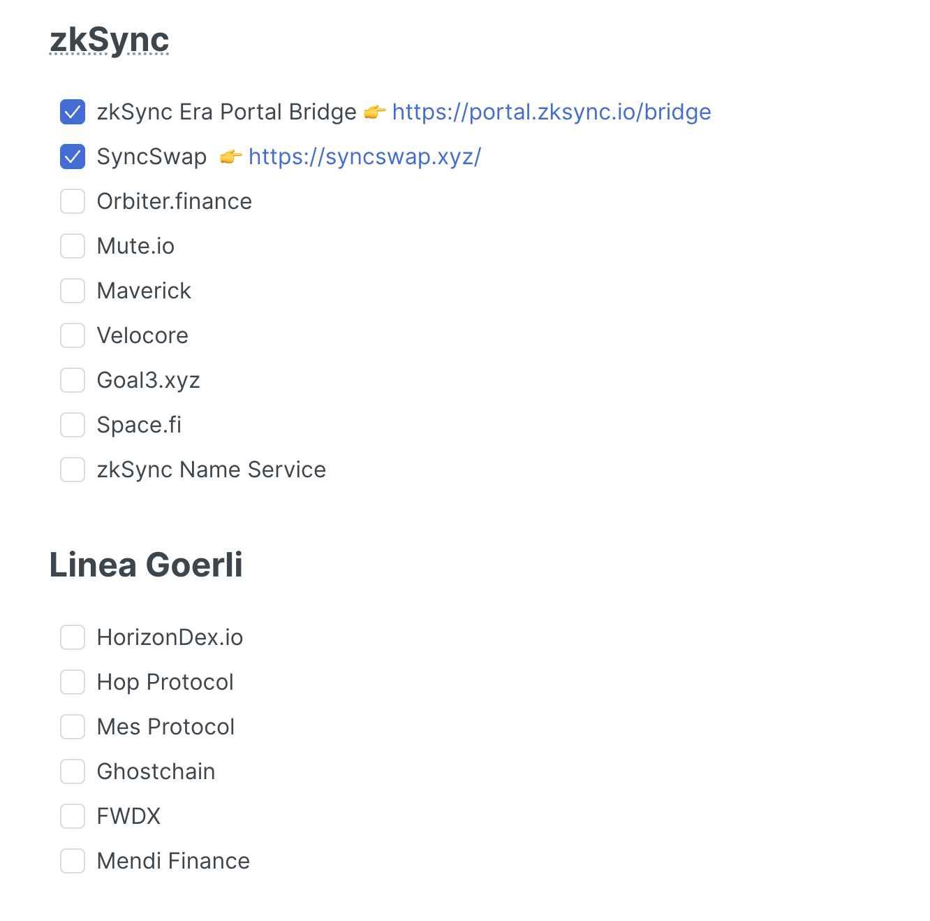 -机器人将根据预定义的参数自动与 zkSync 上的多个项目/协议进行交互;