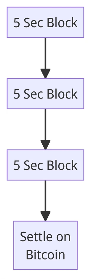 更快的约 5 秒区块大大提高了交易吞吐量,改善了 dApp 的响应能力,同时保持了比特币结算的安全性。