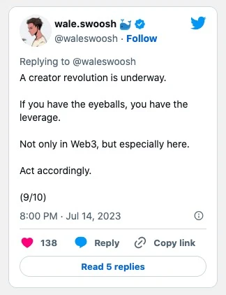 总而言之,ThreadGuy 的努力被赋予了货币价值,NFT 文化的发展也推动着 Web 3 社区对 NFT 真正意义的热切记忆,以及对创作者应得报酬的必要性。