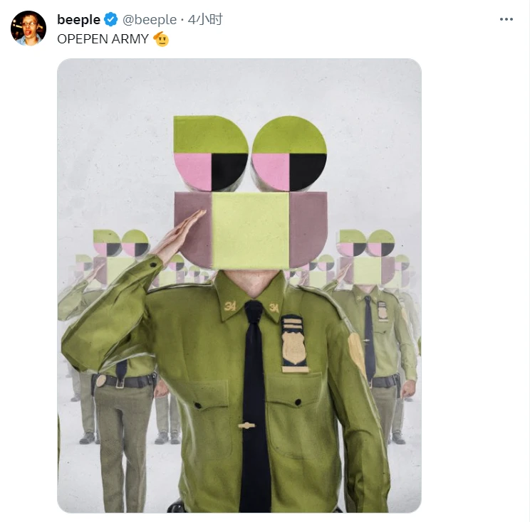 Opepen Threadition 发布后,大伙发现 Bored Elon、ThreadGuy 和 Jack Butcher 之间发生的事件所具有的意义远远超出了人们对相互之间简单融洽关系的预期。友情的魔法已然传播开来,甚至 Beeple 也加入了对这一事件的讨论,随后 Butcher 为他制作了属于他自己的定制 Opepen。