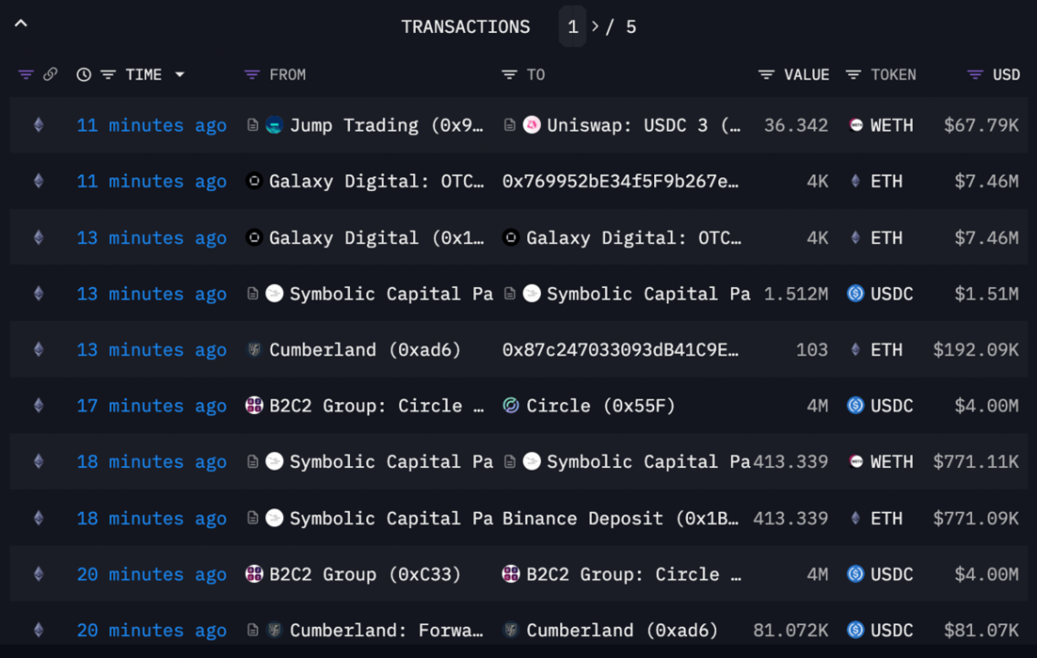 例如,通过将结果筛选为仅限最近一个小时内的交易,最低价值为 50, 000 美元,并仅限基金进行的交易,用户可以看到聪明钱最近进行的大额交易列表。