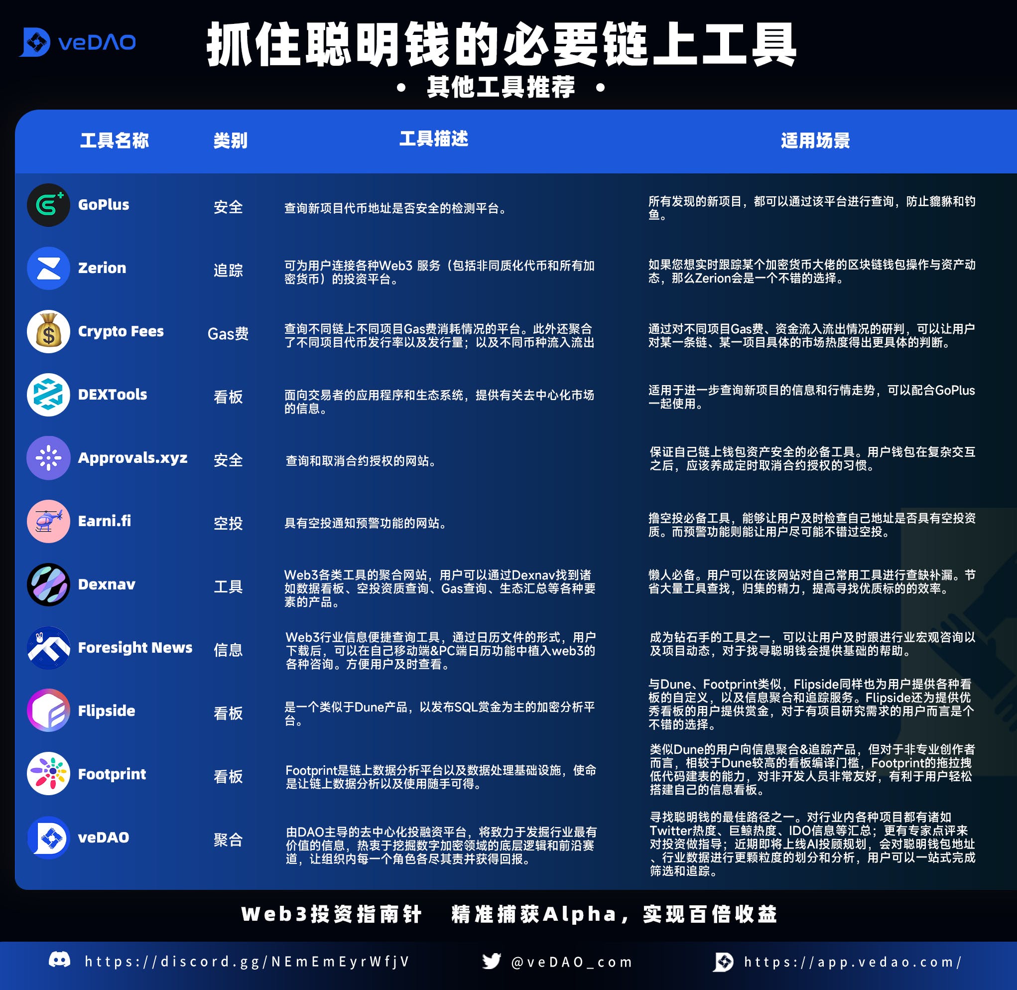 除上述 5 个工具外,veDAO 研究院还为大家汇总了其他几个常用的工具,帮助大家更轻松的找到聪明钱。