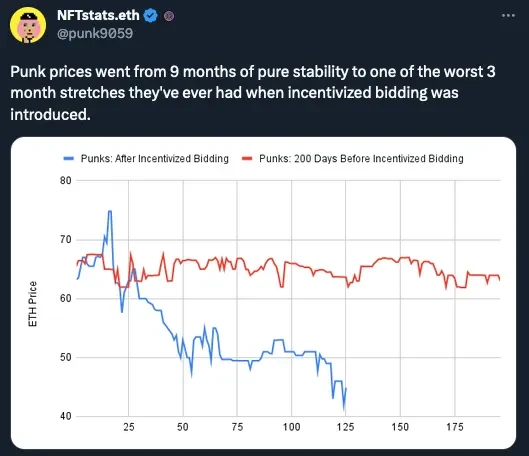 这些 PFP 变成了用于交易以积累$BLUR 代币的代币。它们的非同质性进一步降低,这就是为什么我认为代币激励对市场的影响是负面的原因。