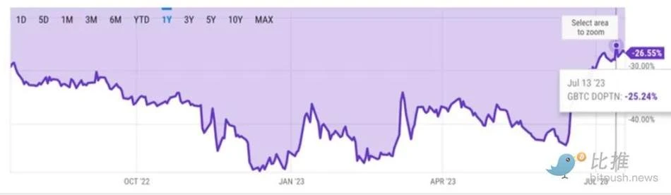 在 SEC 重申拒绝 Grayscale 申请将信托转换为 ETF 的理由后,GBTC 负溢价在 12 月加深至创纪录的 50% 。