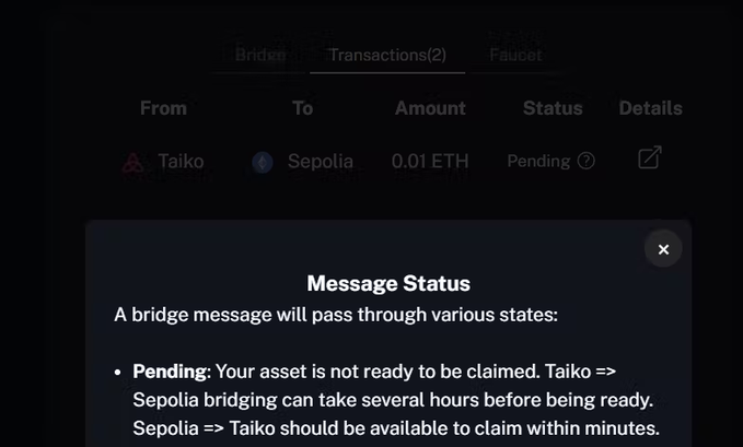 类型 1 ZK-EVM 的缺点是,当一切都与以太坊完全相同时(即使在内部),生成证明需要很长时间。这意味着,用户将 ETH 从 Taiko L2 桥接回以太坊 L1 需要几个小时的处理时间(如下所示)。