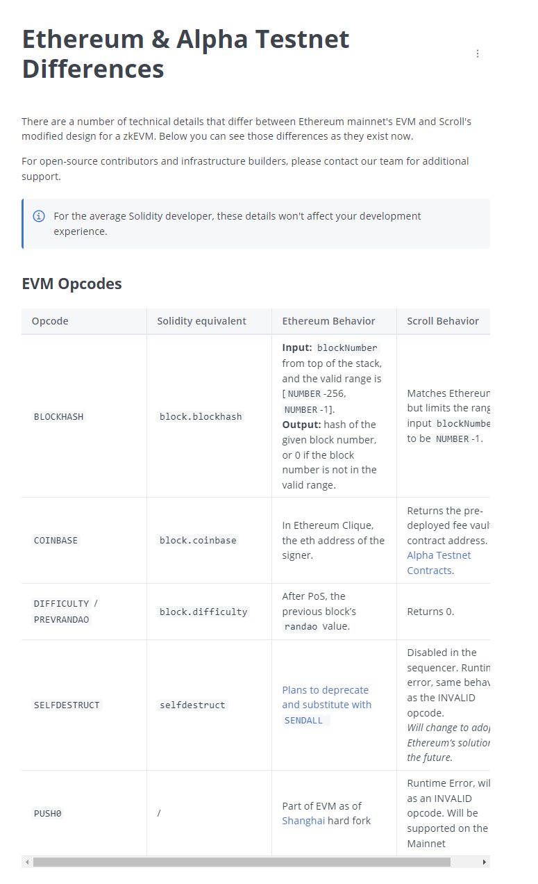 Scroll 属于类型 3 ZK-EVM,目前处于测试网阶段。Scroll 也在官方文档中列出了 ZK-EVM 与以太坊 EVM 之间的差异。