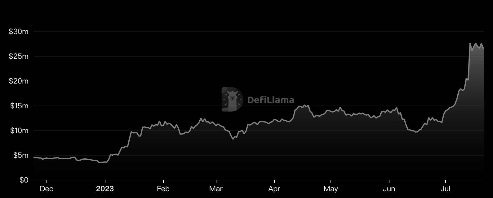 拥有众多明星资本加持的 Solend,一上线就成为 Solana 领域借贷的头牌项目,巅峰时期的 TVL 高达 8 亿美元。但随着 Solend 团队接管巨鲸清算的事件,其发展势头就一路向下。