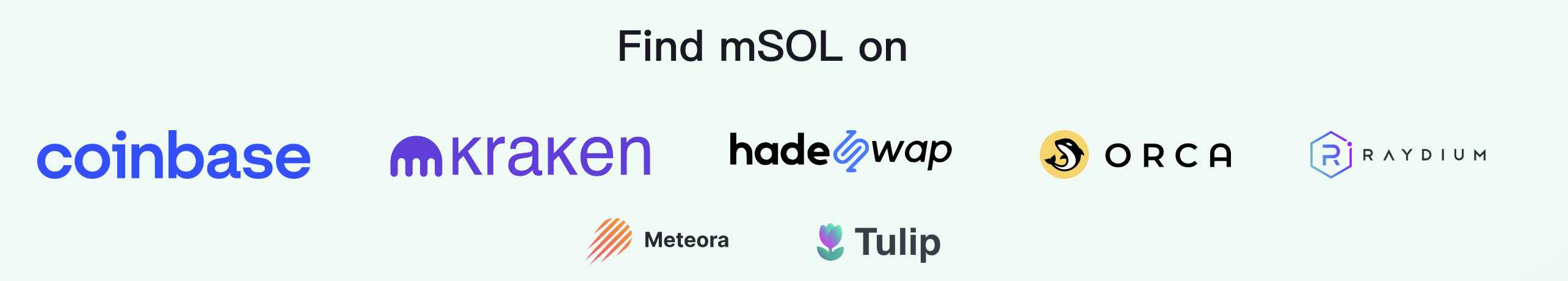 虽然现在看起来似乎并没有什么新奇之处,不过作为 2021 年推出的协议,Marinade 也曾经拥有辉煌的过去,并且是在高峰期拥有超过 15 亿美金 TVL 的老牌 DeFi 协议。虽然与巅峰时期的数值相去甚远,但仍然是目前 Solana 生态 TVL 排名第一的项目。平台质押 SOL 获得的代币 mSOL 流动性在该领域相对较好,已经上线了 Coinbase 、 Kraken 等主流交易平台。