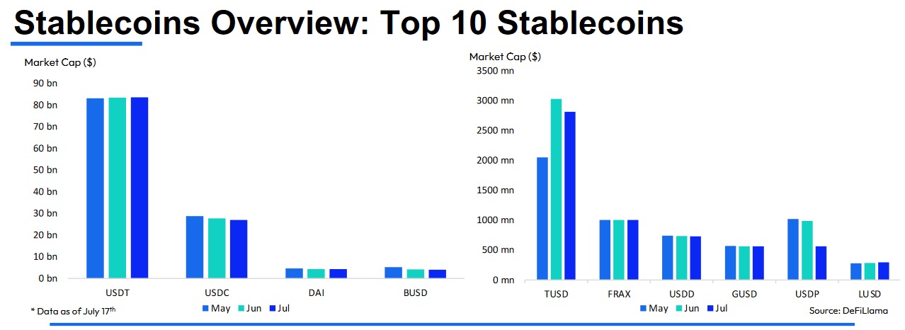 在十大稳定币中, Pax Dollar(USDP)受到的打击最为严重,7月份下跌43.1%至5.63亿美元,为2020年12月以来的最低水平。