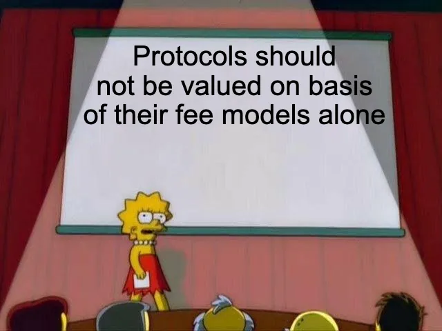 对于创始人来说,信息非常明确。你可以通过推动叙事来赚钱,即使协议费用或使用率不足。 Meme 代币就是这种情况的一种极端版本。另一种方式是构建一个能够产生费用并具有合理倍数的 dApp。Aave 和 Compound 已经发展成为具有这种特点的平台。这两种方式都需要大量的工作。