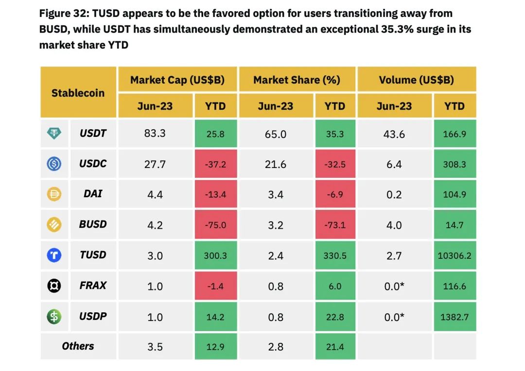 $USDC 下跌37.2%, $BUSD 下跌75%, $TUSD 则上涨了300%