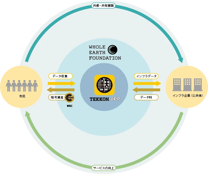 WEC 是 TEKKON 的原生代币。根据官方描述,这一生态系统由四方角色构成:公民、Whole Earth Foundation、基础设施公司(或公共机构、其他公司。