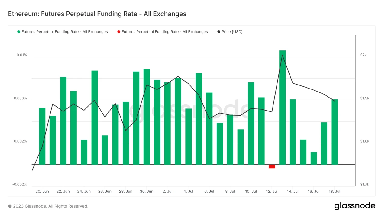 期货资金费率:本周费率中性。费率 0.05-0.1% ,多头杠杆较多,是市场短期顶部;费率-0.1-0% ,空头杠杆较多,是市场短期底部。