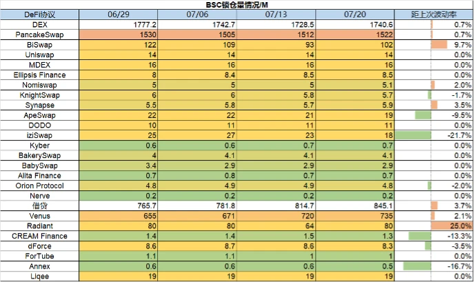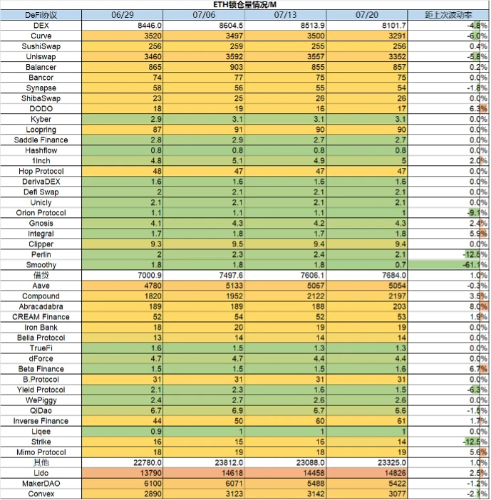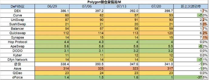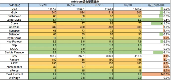 通过各链协议变化情况看,协议锁仓量变化值极小,基本上为主流协议跟随大盘行情出现小幅变动,同时也缺少锁仓量增长较快的新协议。