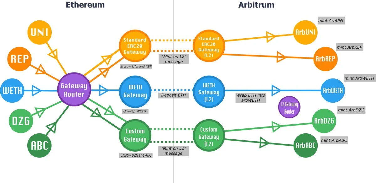 2. 使用第三方 mint/burn 系统,如 Multichain 或 L 0 OFT。 这解决了流动性问题,但却将发行者永远锁定在底层桥接器的安全性上,它还会破坏可替代性:例如,通过 Arbitrum 的桥接器,就会产生“不同”的代币。