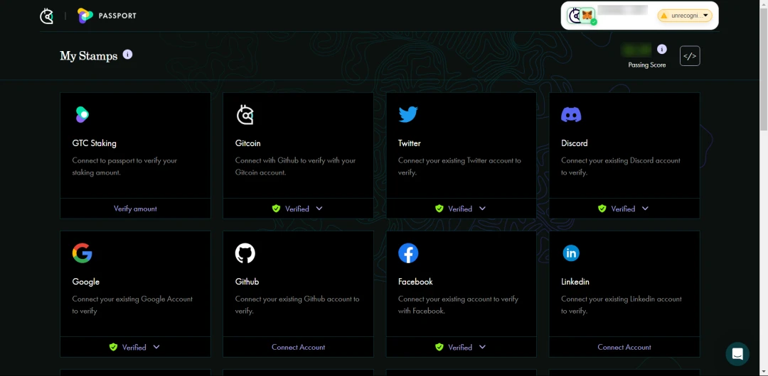 未来一些项目的操作,大概率需要 Gitcoin Passport 的分数作为门槛。作为用户,我们也有必要去完成一下相应的认证任务。