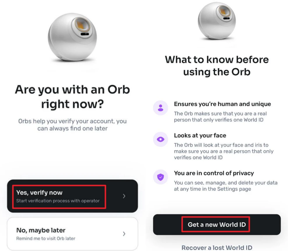 World ID 的推广与操作也比较简单,Worldcoin 推出了一个虹膜检测仪 Orb,接着他们在各个国家招募当地的代理商,经过考核和培训之后,将 Orb 发放给这些代理商,由代理商去完成虹膜收集任务。
