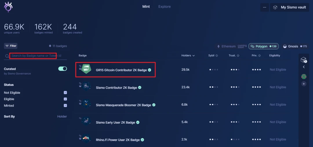 5. 最后一个 Sismo,采用零知识证明且侧重隐私保护是他的优势。 但是目前 Sismo 仍然处于比较早期的阶段,合作项目较少,技术路线也在变化,因此用户可以上手体验的东西也不会很多。暂时可以体验领取徽章,或者它的徽章创建功能,并且随时关注他的新动向。