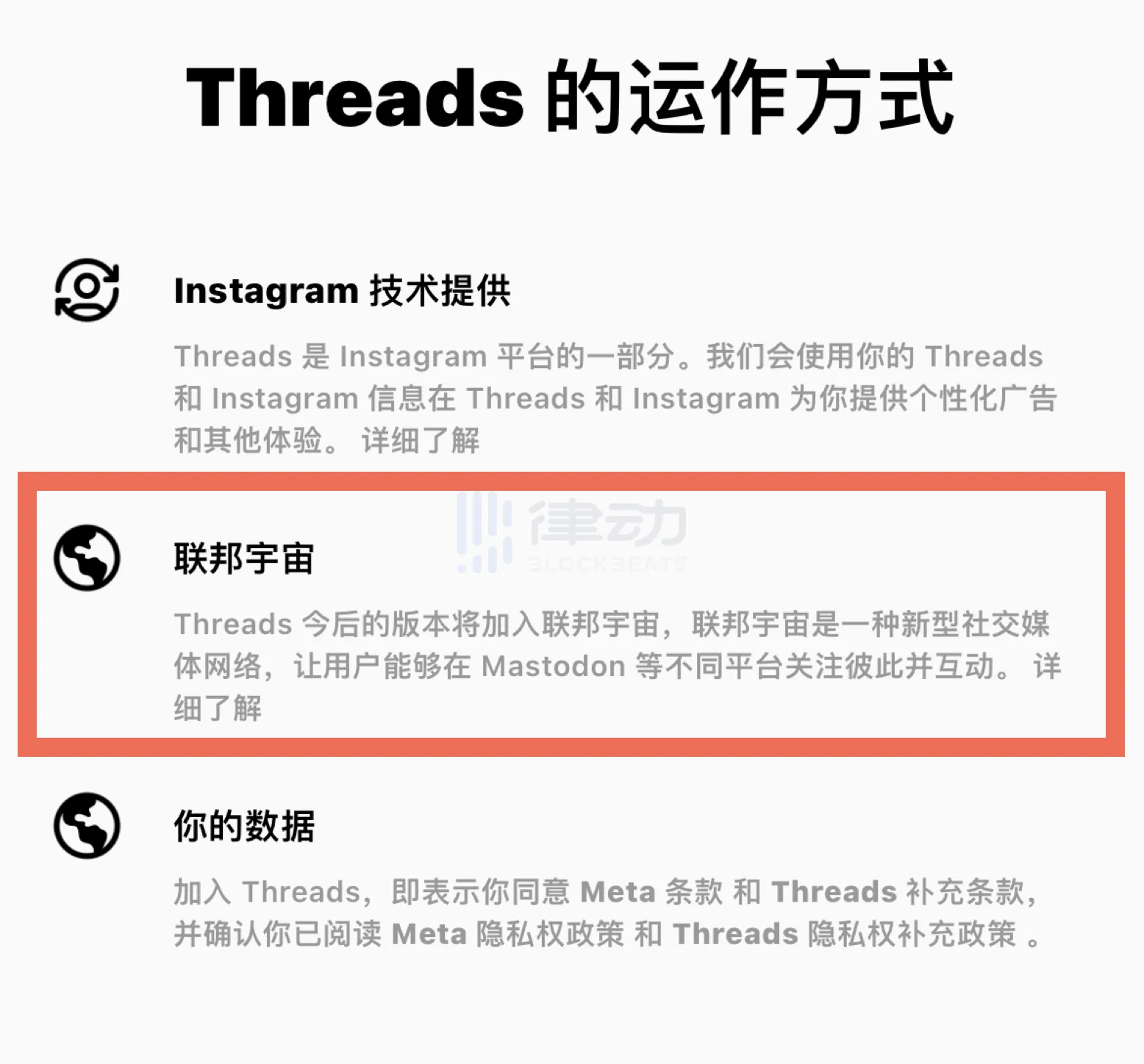 在 Facebook 母公司 Meta 新推出的 Threads 用户界面上,有一条这样的文案——「今后的版本将加入一种新型社交媒体网络的联邦宇宙,让用户能够在 Mastodon 等不同平台关注彼此并互动。」