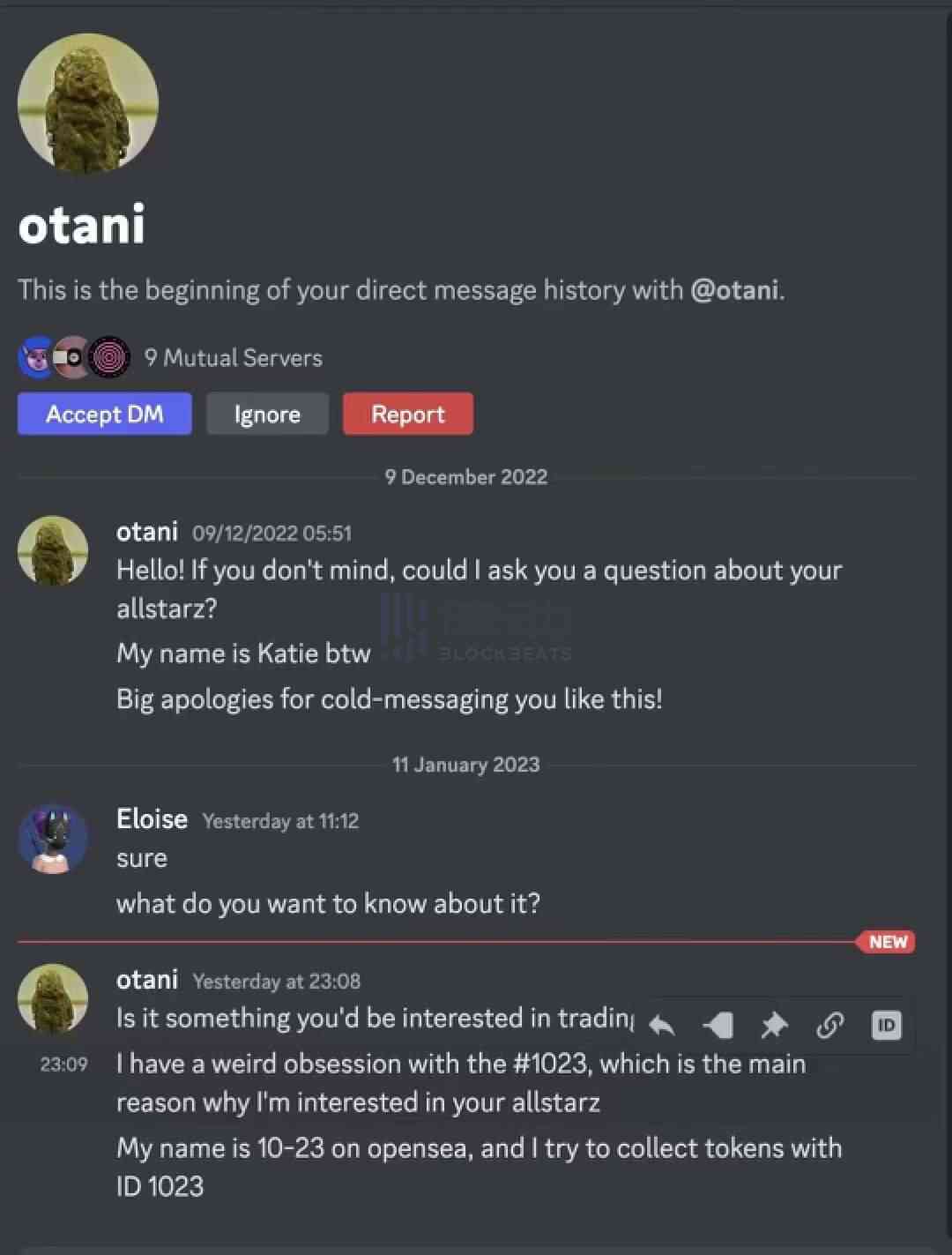 这样的对话和交流,尤其是对于那些有社区属性的 NFT 系列来说具有特殊意义。对于成员来说,与其千辛万苦通过其他工具追溯/搜索到 NFT 持有者,钱包到钱包的 DM 的方式简直要方便得多。