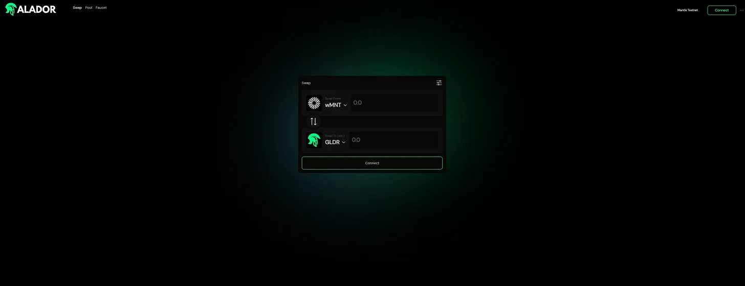 目前 Galador 支持 Mantle 测试网,也在近期准备上线 Manle 主网 Alpha 的 DEX 之一,token 还未发行,用户可以提前埋伏,在其网络上领水进行 swap 和添加流动性,未来或将有福报,