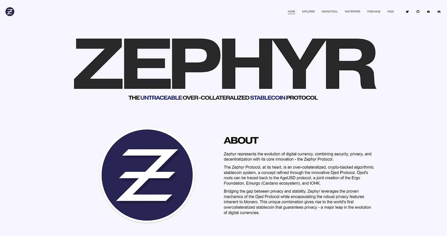 ZEPH 可以通过挖矿获得,用于超额抵押 zephUSD(系数为 400% ),并且有供应上限。ZEPH 的缺点是「可用性低」,只能在 Seven Seas 上购买。某种程度上,这也是其「隐私性」的一部分,该协议目前处于内测阶段。Zephyr 继承了 Monero 的隐私功能,其亮点就是去中心化的、针对隐私的稳定币。该协议概念创新来自「 Cardano 上首个去中心化稳定币 Djed」,为了弥补隐私和稳定性之间的差距,Zephyr 利用了 Djed Protocol 的机制,同时结合了 Monero 固有的强大隐私功能。也是业内首个针对隐私性的超额抵押稳定币,或是 crypto 发展的一次重大飞跃。