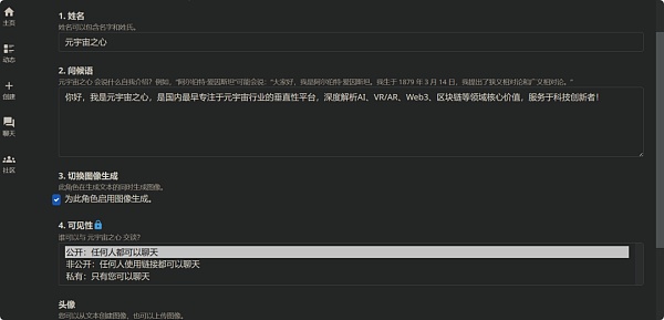 若是想要创建自己的机器人,只需点击“创建”并按照说明进行操作即可。 用户可以对角色进行充分的个性化定制,以使他们更符合自己的喜好和需求 。需要注意的是,正如Character.AI聊天界面上方直言不讳的红色警示“角色说的所有话都是虚构的”,你应该意识到聊天机器人往往都是会出错的。