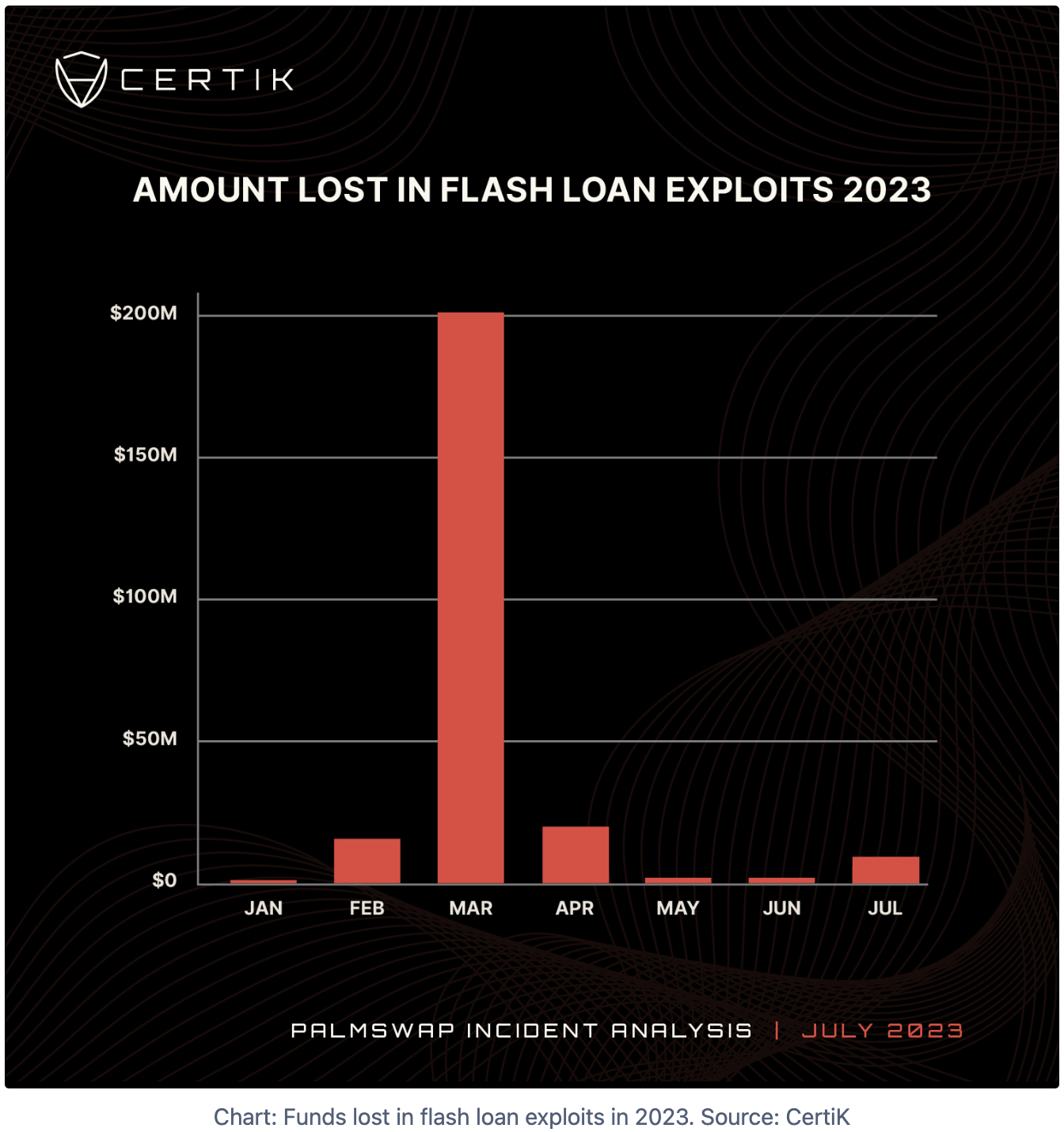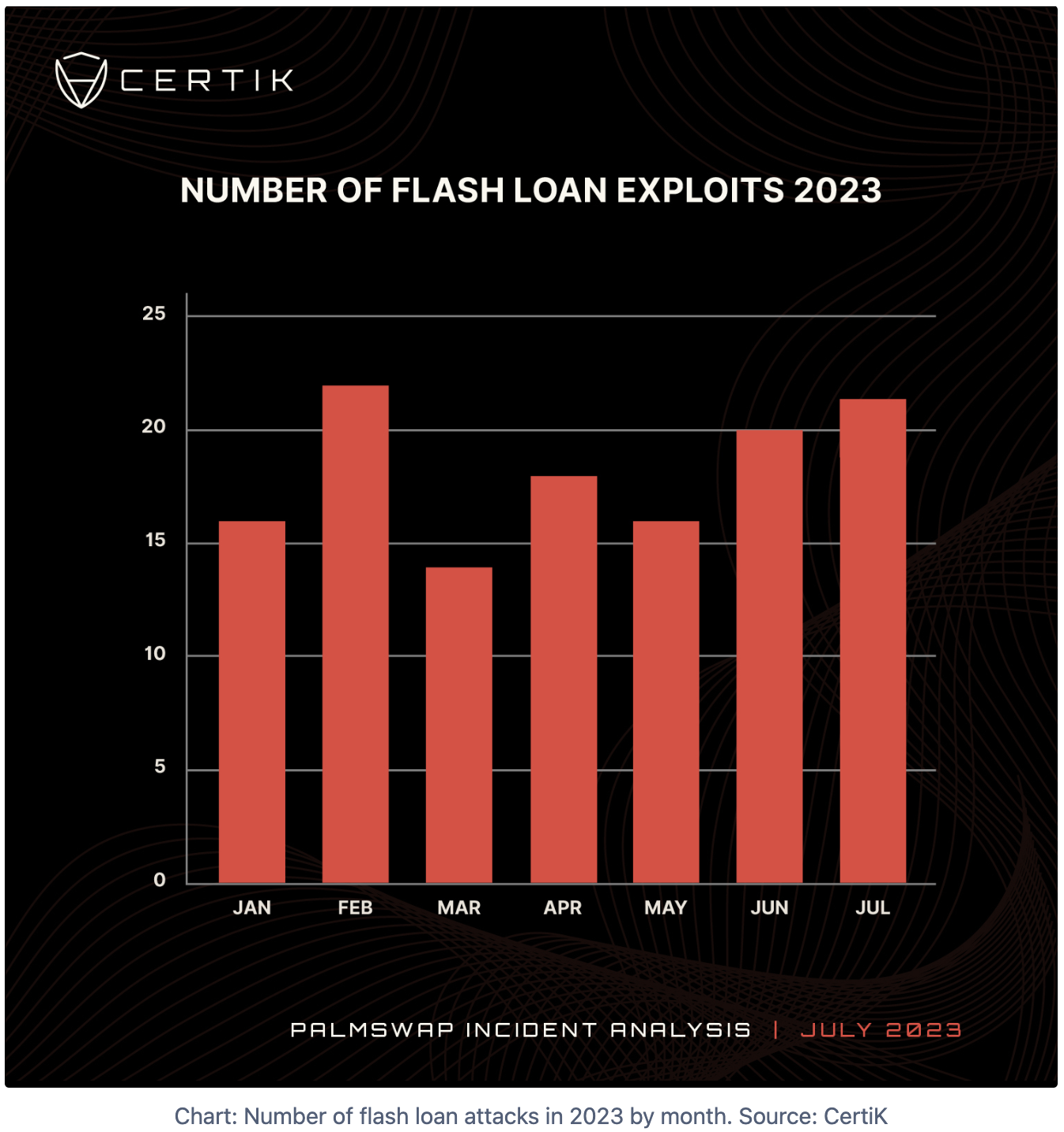 在7月的头三周内,已经发生了22起攻击,导致损失850万美元,而2023年每月平均闪电贷攻击为18起。7月和2023年2月各自创下了每月22起攻击的记录。这凸显了理解DeFi风险和在加密货币领域构建更安全的智能合约的重要性。警惕和预防是在这个波动的领域中安全航行的必要条件。