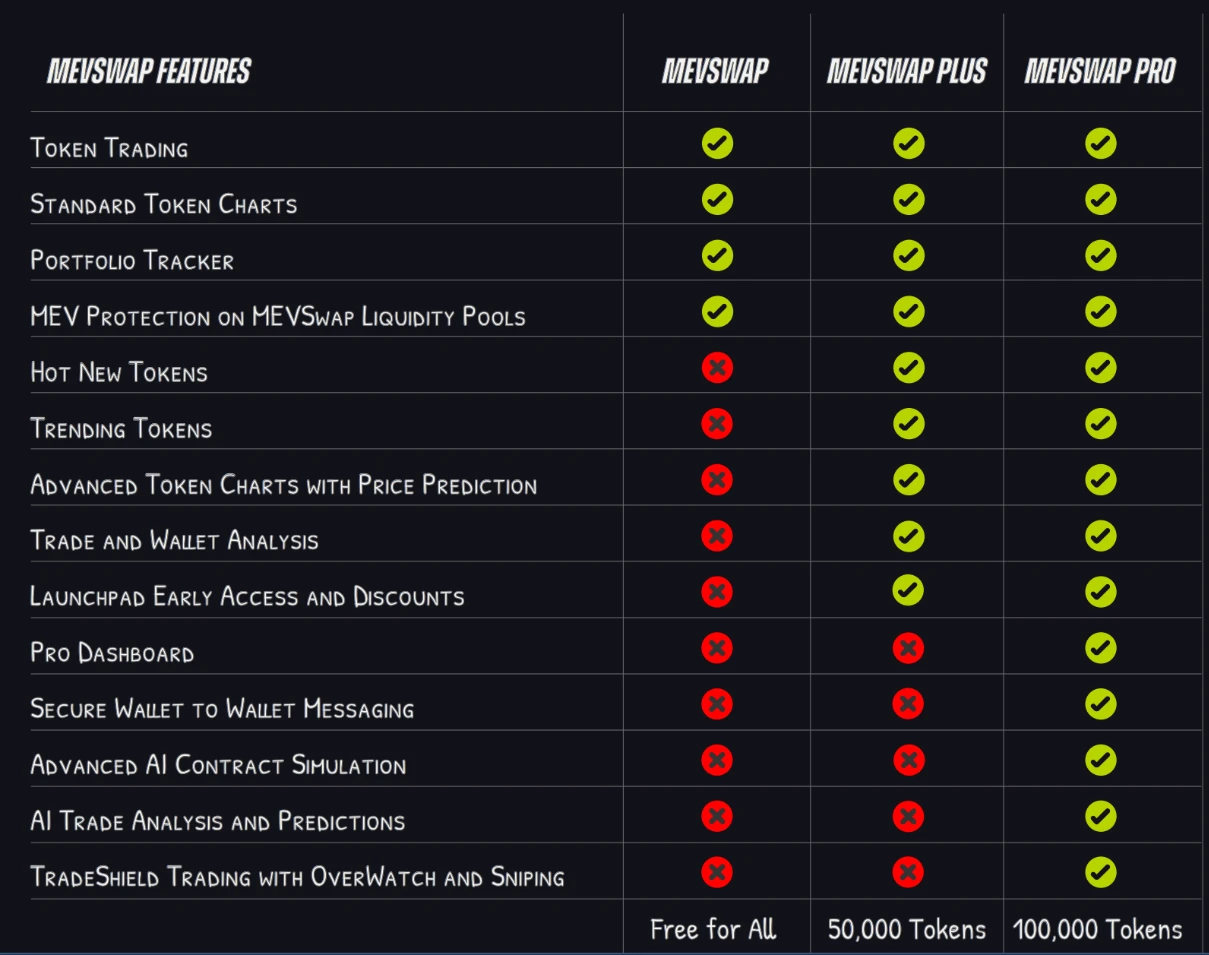 1. 用户通过持有不同数量的代币来获得 MEVSwap 的更高级的功能支持。