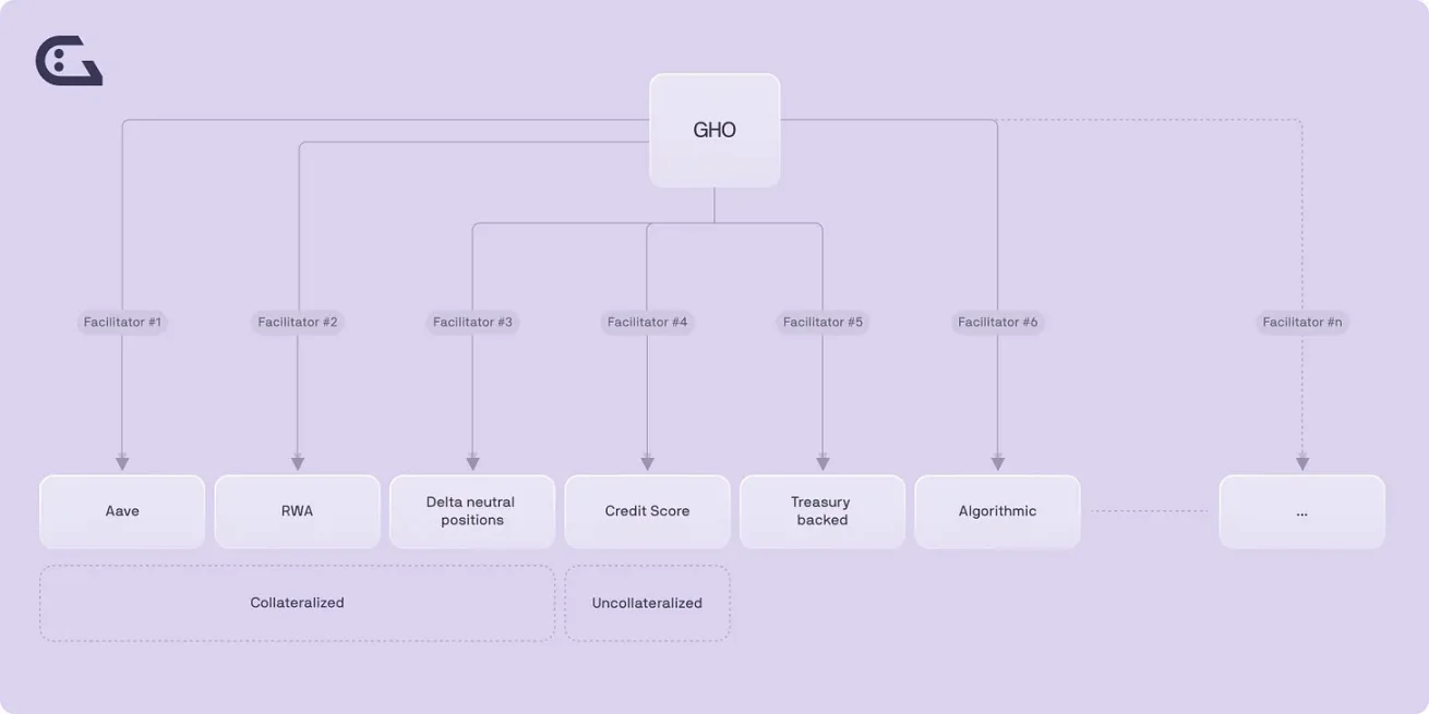Aave DAO 可以选择使用现实世界资产、国债等抵押品铸造 GHO,甚至采用类似于当前 FRAX 模型的部分算法方法。