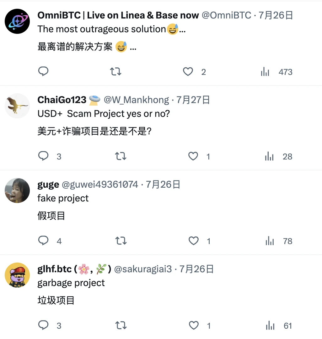 同为 SyncSwap 生态的另一 DEX 项目 SyncSwap 则贴心的为广大用户进行了说明。U SD+团队将为 USD+持有者和流动性提供者拍摄快照,以用于在将来补偿用户受影响的资金,但只有那些提款的人才会被包含在快照中。 若用户进行取款,即会被进行“rebase”,即 直接缩减余额。