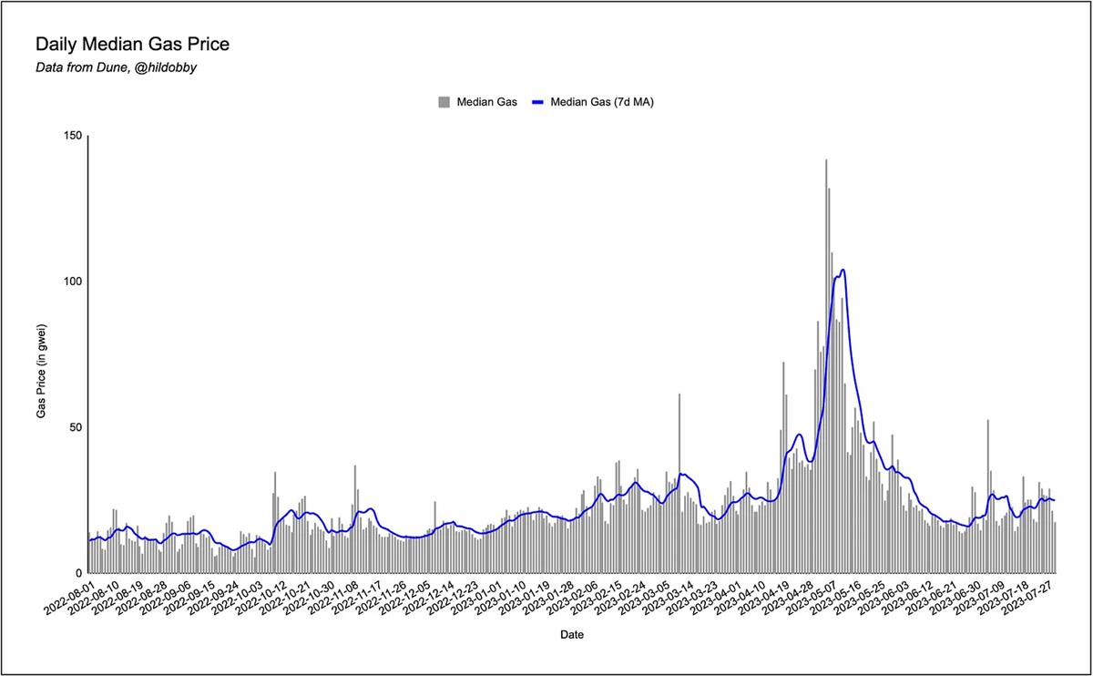然而,在 2023 年 10 月至 2024 年 2 月之间,备受瞩目的以太坊改进提案(EIP-4844 ,Proto-danksharding)计划推出。EIP-4844 提议向以太坊添加一种新的交易类型,允许接受“数据块”。这些“数据块”在大约两周后被删除或修剪,而不像现有 calldata 一样永久存储。这些数据块的大小设计得足够小,以减少主网链上的存储开销。