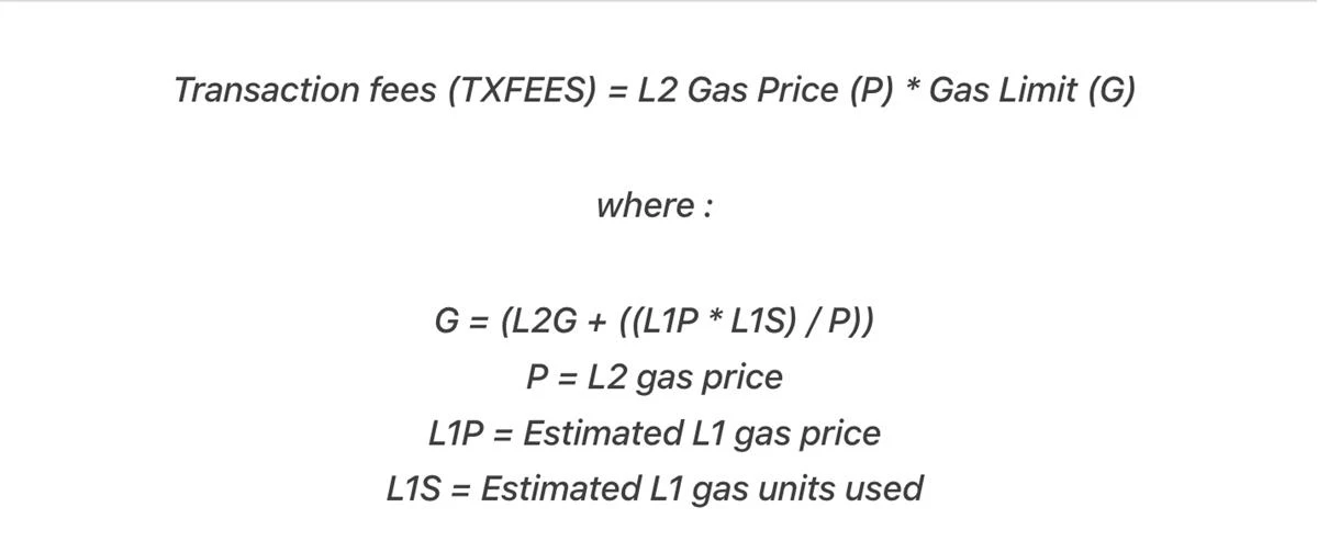 Fees = L1_gas_price_estimate * (L1_calldata_size + L1_buffer) + L2_gas_price * L2_gas_used