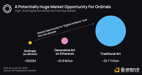 高端数字艺术是 Ordinals 的第一个主要市场,随着加密艺术市场的增长并缩小与传统艺术市场的差距,Ordinals 准备占据更大的市场份额,从而提供巨大的机会。
